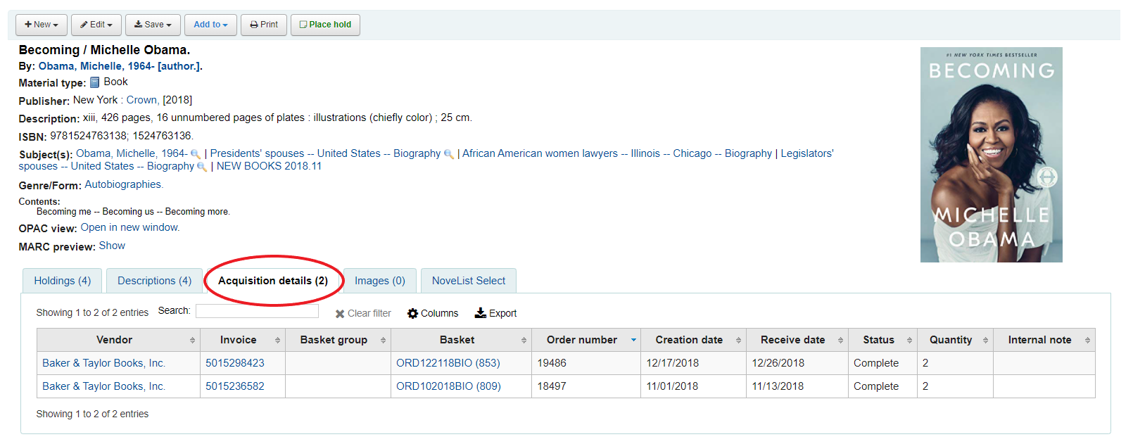 Created attachment 120472 [details] Acquisitions Detail tab count