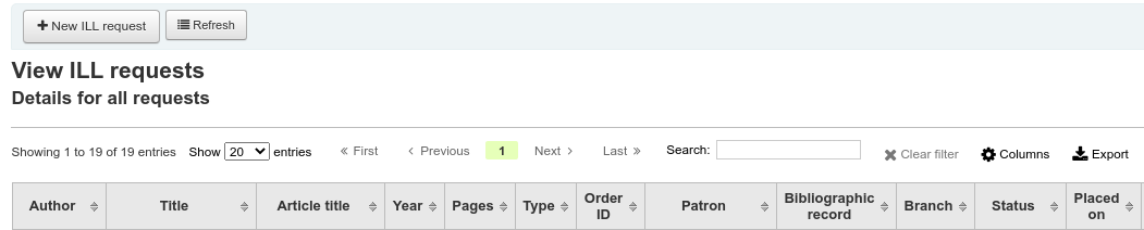 After upgrading to 20.11.05, the little text box that can be used to search/filter the main table of ILL requests on INTRANET/cgi-bin/koha/ill/ill-requests.pl is gone. This happens on different instances on two separate servers. I have one server running 20.05, and the box is visible there. So far I only see it happening on the ILL form, not for example the holds to pull table or the table of saved reports, where the box is shown as expected. There are no relevant messages in the JS console. I thought it could be interference from custom JS in IntranetUserJS, but I removed everything in there and it still happens.