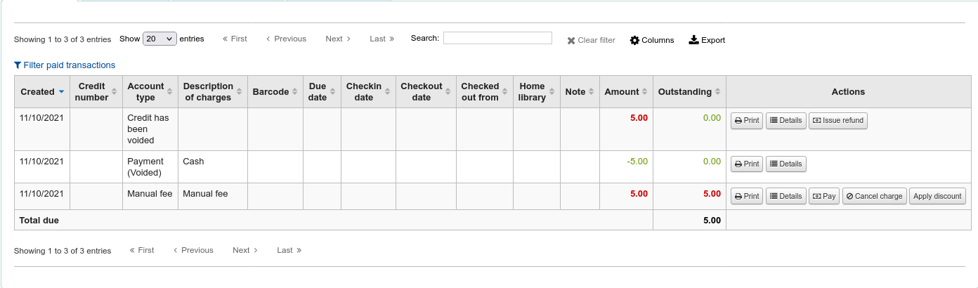 Created attachment 127519 [details] Bug 28663 - Screenshot For me (see screenshot) there is no apply discount button for the void transaction. Also, the patch doesn't apply 8-(.. Applying: Bug 28663: Prevent discounts against void lines Using index info to reconstruct a base tree... M koha-tmpl/intranet-tmpl/prog/en/modules/members/boraccount.tt Falling back to patching base and 3-way merge... Auto-merging koha-tmpl/intranet-tmpl/prog/en/modules/members/boraccount.tt CONFLICT (content): Merge conflict in koha-tmpl/intranet-tmpl/prog/en/modules/members/boraccount.tt error: Failed to merge in the changes. Patch failed at 0001 Bug 28663: Prevent discounts against void lines