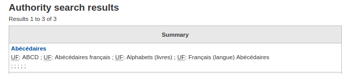 In the results of an Authority searching we can see semicolon appears in 'Summary' column. It should be field 580 instead