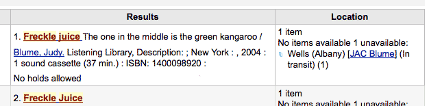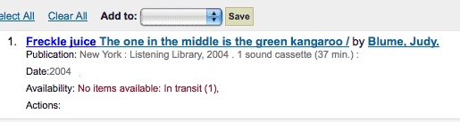 ---- Reported by oleonard@myacpl.org 2009-03-06 06:45:18 ---- If your search results list has a title with only one item and that item is in transit, there is no hold link. It says "No items available, in transit (1)." ---- Additional Comments From oleonard@myacpl.org 2009-03-06 06:46:43 ---- Created an attachment View in the OPAC ---- Additional Comments From oleonard@myacpl.org 2009-03-06 06:46:59 ---- Created an attachment View in the staff client ---- Additional Comments From nengard@gmail.com 2009-12-28 20:17:08 ---- I have confirmed that this is still an issue in the most recent version of HEAD. However if you go into the bib record and click the 'Place Hold' button there you can actually place a hold - but a message does appear on that page as well saying you can't place a hold ... --- Bug imported by chris@bigballofwax.co.nz 2010-05-21 01:05 UTC --- This bug was previously known as _bug_ 3012 at http://bugs.koha.org/cgi-bin/bugzilla3/show_bug.cgi?id=3012 Imported an attachment (id=1030) Imported an attachment (id=1031) Actual time not defined. Setting to 0.0 The original submitter of attachment 1030 [details] is unknown. Reassigning to the person who moved it here: chris@bigballofwax.co.nz. The original submitter of attachment 1031 [details] is unknown. Reassigning to the person who moved it here: chris@bigballofwax.co.nz.