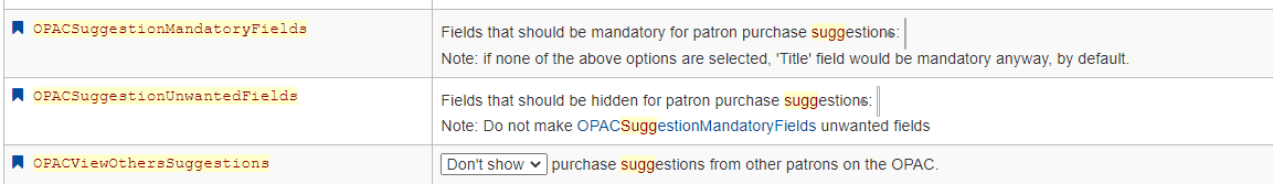 (In reply to Katrin Fischer from comment #1) > Can you give an example of where Select2 is used in Admin preferences? I am > only aware of the usage in Cataloguing (items, authorities and bibliographic > records). Does the problem appear there as well? The following sys prefs is where I see the issue, pretty consistently in the test server and occasionally in my production server. None of them appear to be select_2s but I might just be missing it. ArticleRequestsMandatoryFields ArticleRequestsMandatoryFieldsItemOnly ArticleRequestsMandatoryFieldsRecordOnly BatchCheckoutsValidCategories MarkLostItemsAsReturned OPACHoldsIfAvailableAtPickupExceptions CoceProviders SocialNetworks OPACSuggestionMandatoryFields OPACSuggestionUnwantedFields AutoShareWithMana