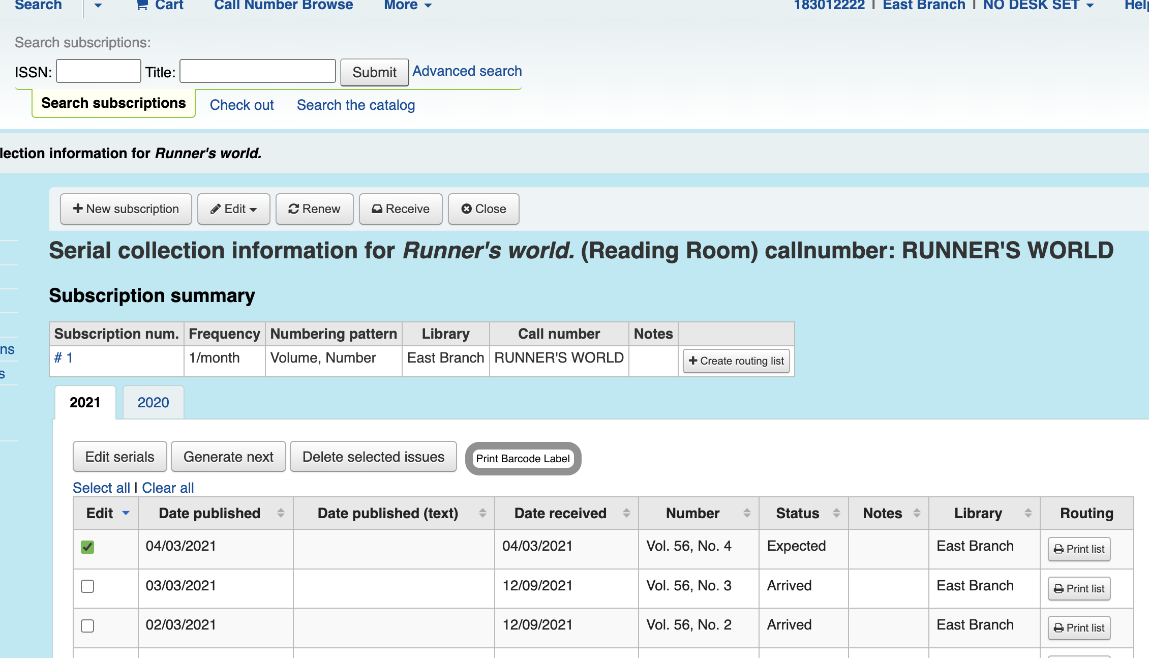 Created attachment 131758 [details] add-button-option It would be great to have a print label button from the serial collection information in the serials module. cgi-bin/koha/serials/serials-collection.pl?subscriptionid=1 After a user saves or updates the latest issue they are taken to the serial collection page where they have buttons for editing generating the next serial and deleting selected issues. It would be helpful to have a button to print the labels for the items a user just created from this screen.