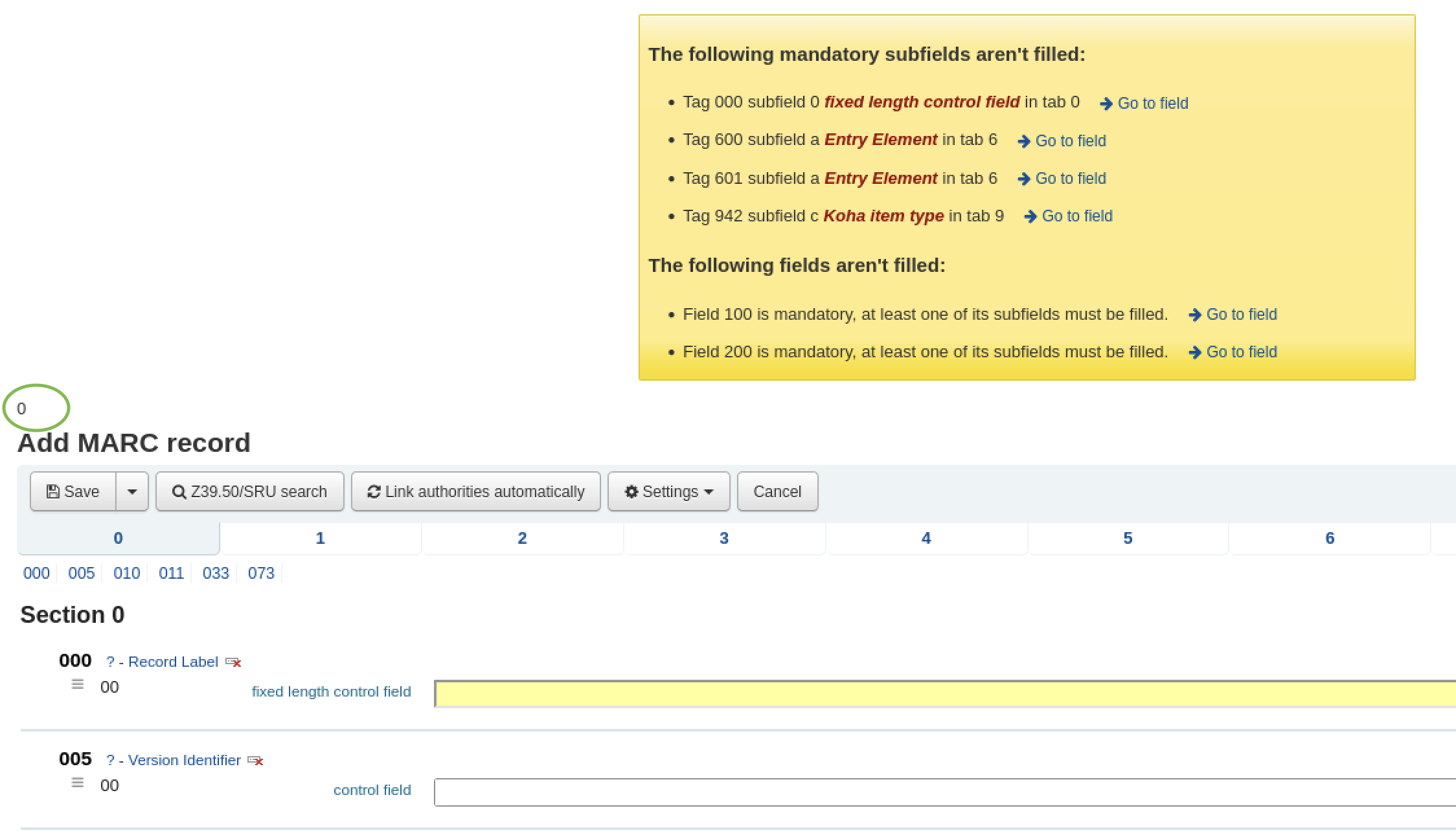 Created attachment 133062 [details] [review] Bug 30482: Potential for bad string concatenation in cataloging validation error message In validating the basic MARC editor form before submission, we run AreFieldsNotOk() twice (once with the parameter "false") and concatenate the result for output. This creates the potential for the error string to be appended with "0" if AreFieldsNotOk() returns false. This patch improves the logic around building the error string. To test, apply the patch and make sure one of your MARC frameworks contains at least one mandatory field and at least one important field. - Edit or create a MARC record in the basic MARC editor. - Submit the form in various states of completion: - If a mandatory and an important field are empty, you should see two error messages at the top. "The following mandatory subfields aren't filled" and "The following important subfields aren’t filled." - If a mandatory OR an important field is empty, you should see a single message. - If it's the important field which is empty, a confirmation will ask if you want to save the record anyway. Test that both answers to this confirmation work correctly. - If no mandatory or important fields are empty the form should submit.