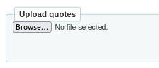 Created attachment 135696 [details] CSV file with quotes to test the import feature I think the CSV quote import feature is broken... To test: 1- Download the attached csv or create a comma-separated csv with two columns, one for source and one for text (no headers) 2- Go to Tools > Edit quotes for QOTD feature 3- Click on Import quotes --> Note that the layout of the page is a bit strange... there is a big space between the title of the page and the first content box, and there is no space above the browse button 4- Click browse and choose the CSV file --> The quotes should be imported in an editable table, you can click on either the source or text of a quote to change it (on my browser the editable field is really small, I wonder if it's the page or my browser (Firefox) or my OS (Ubuntu)) 5- Click Save quote --> Nothing happens