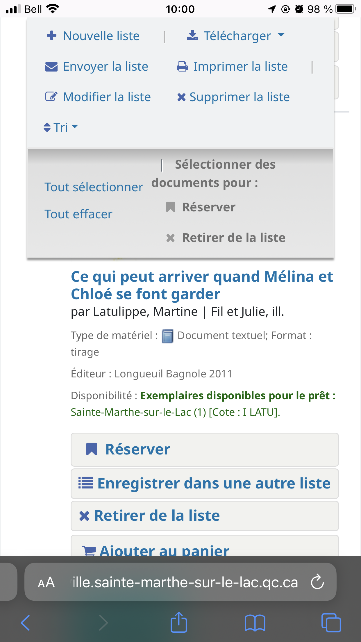 When a patron views their list on mobile, the sticky menu can take up to half the screen depending on the device. To test: 1) Using a smartphone or your browser's mobile view tool, go to the OPAC 2) Log in as a patron 3) Create a list 4) Add items to the list (at least 2 or 3) 5) View the list, scroll down The sticky menu has lots of options New list, download, send list, etc. and it takes up a lot of space. I think the sticky menu is fun, but on mobile, it should maybe be a couple of option plus a burger menu (three lines)?