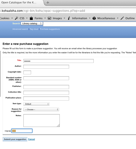 Created attachment 28506 [details] suggestions form, with hidden 'negcap' field showing