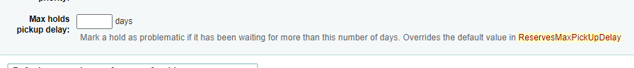 (In reply to Andrew Fuerste-Henry from comment #6) > Signed off because it works as described. See my note about the highlighting > on the syspref name on /cgi-bin/koha/admin/categories.pl. > > Also, I don't love the wording change on the Holds Awaiting Pickup page. > Where it used to say "Holds waiting over X days" (where X is the value of > MaxReservesPickupDelay). Now it says "Holds waiting over passed pickup > date." I like the change to not give a number, since there is no longer an > assumption of one accurate value. But that phrase is messy. > > Maybe just "Holds waiting past pickup date"? I'll provide a follow-up with that change.