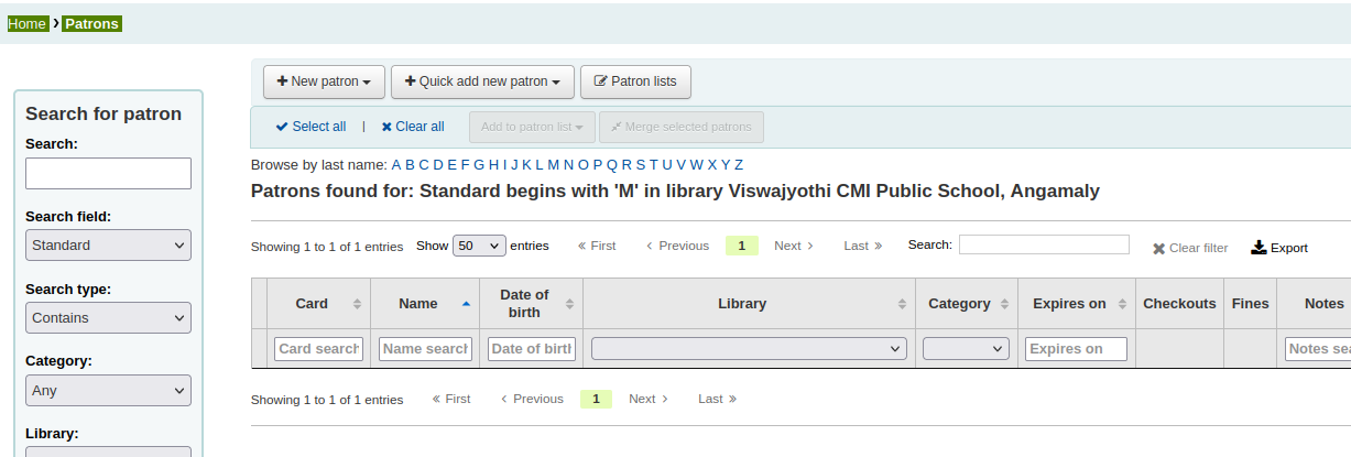 While inspecting the datatables after member search I got this : <td colspan="11" class="dataTables_empty" valign="top">No matching records found</td>