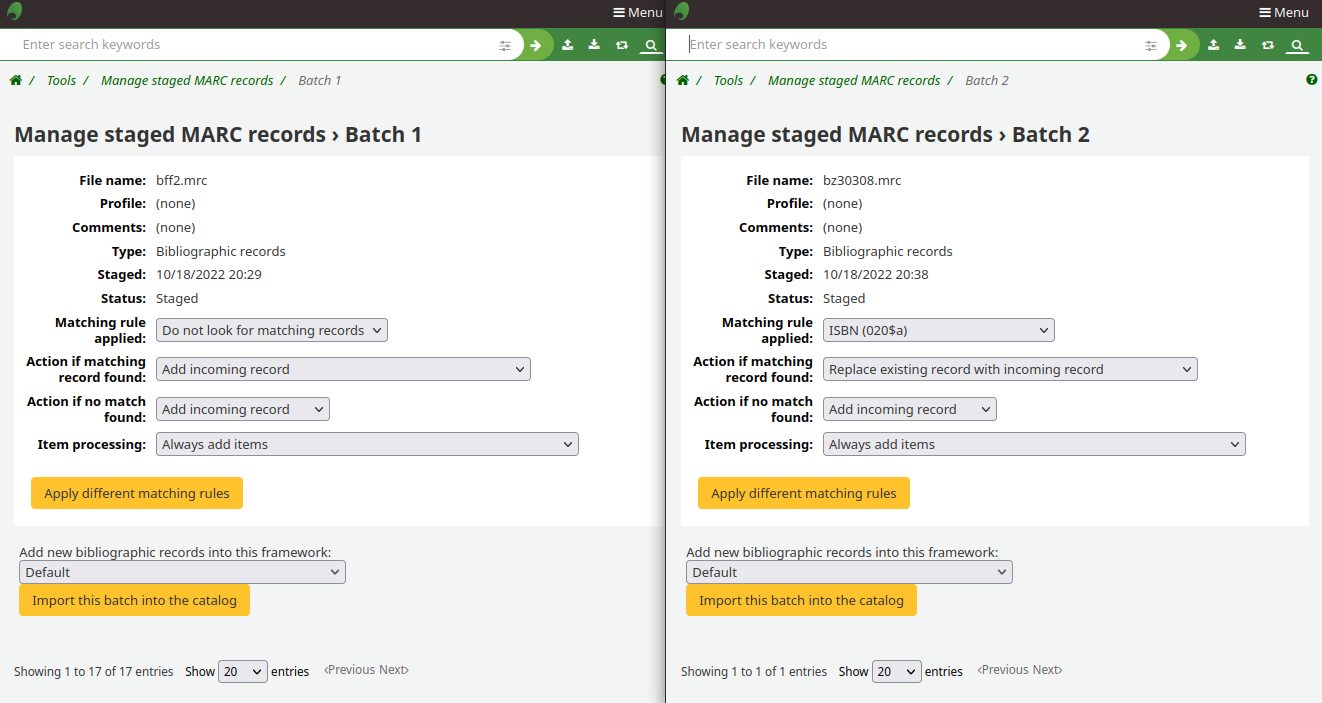 Created attachment 142099 [details] Screenshots of manage staed MARC records - before and after I'm not noticing any differences (see screenshots, even though they are from two different batches). Am I looking in the right place?