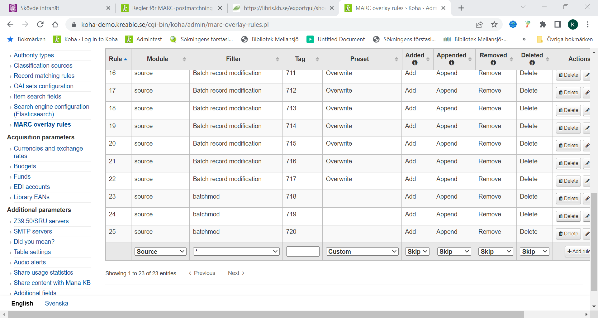 Created attachment 142610 [details] Screenshot of Marc overlay rules Create more than 20 Marc overlay rules The first 20 rules looks ok, rule 21 and upwards shows the coded value under Filter, and presets are empty Rules above rule 20 are not editable, and can't be deleted - so you have to delete rules with a lower value until the unwanted rules gets a value below 21 It seems like this is a displayproblem that doesn't affect performance