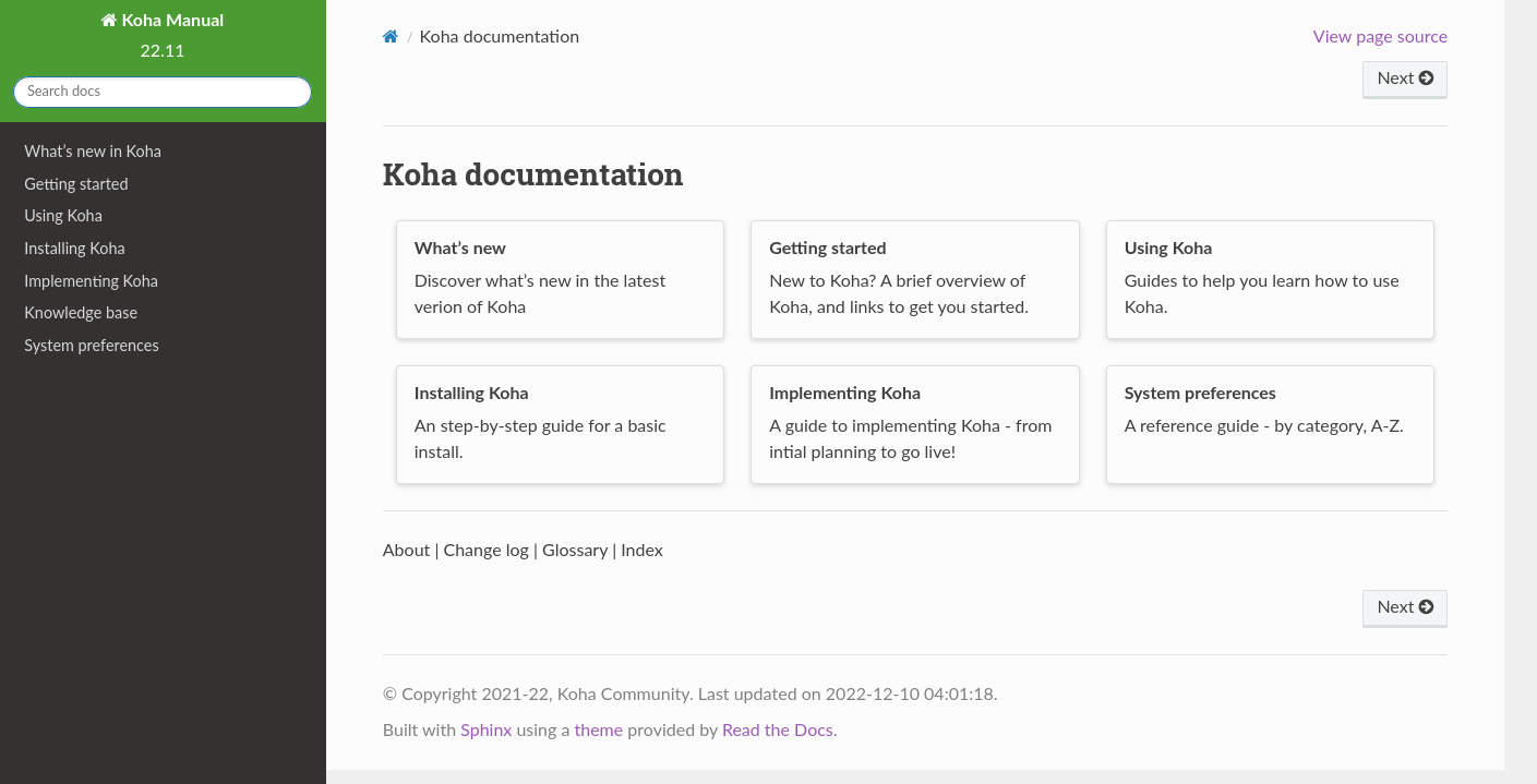 Finally, some movement! The updated home page for the manual is now live at https://koha-community.org/manual/latest/en/html/index.html Still some things to do, and feedback is welcome either here or in the Mattermost documentation channel.