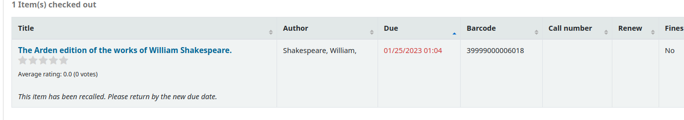 The OPAC Summary ( opac-user.pl ) does include a line which reads "This item has been recalled. Please return by the new due date." in the user's checkout table.