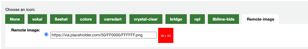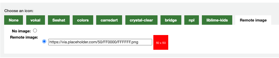 Everything works correctly in item types, including for adding the remote image. However, when you go back to edit the item type with the remote image, I think there is a bug in the display. Initially it lands correctly with the 'remote image' tab active. However, as well as the radio button for the 'Remote image' and the field for the url there is also a 'None' radio button and label. If I switch between that active 'Remote image' tab and another, then back again, this 'None' radio button disappears. See screenshots. In authorised values, everything works correctly EXCEPT for the remote image option. It allows you to set a remote image, and correctly displays the remote image. However, when you go back to edit the authorised value, it starts on the "None" tab, unselected. When you then click on the 'Remote image' tab, the radio button is unselected and there is no url showing in the field. Saving out of that screen removes the remote image, even without selecting the 'None' radio button on the 'None' tab.