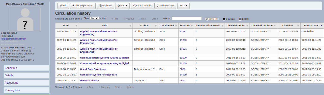 Created attachment 148109 [details] Circulation history of patron who returned the item recalled shows that the item is checked-in.