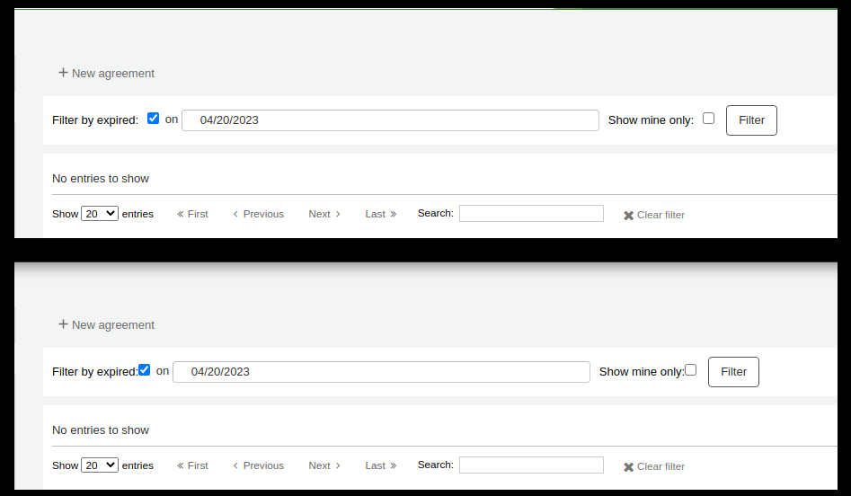 Created attachment 149924 [details] comparison Top picture is the header in agreements list before the patch, bottom picture is after the patch. This CSS in this patch is being applied in agreements list unintentionally. .filters input[type="checkbox"] { margin-left: 0 !important; }