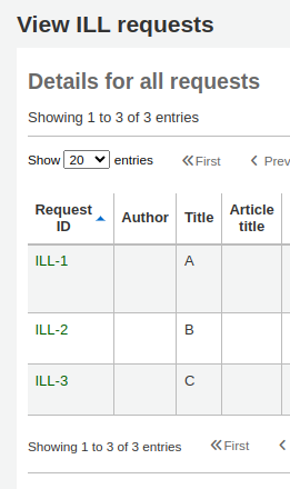Created attachment 152886 [details] [review] Bug 34133: Set default sort on first column (ID) desc Test plan: Before applying patch: * Open incognito at /cgi-bin/koha/ill/ill-requests.pl, * Verify order is by ASC (lowest ID first) * Close incognito Apply patch, then: * Open incognito at /cgi-bin/koha/ill/ill-requests.pl, * Verify order is by DESC (highest ID first) Signed-off-by: Magnus Enger <magnus@libriotech.no> Followed the test plan from Bugzilla, and added it above. Works as advertised.