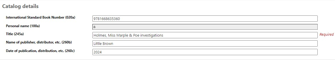 We are seeing this issue on 22.11 too. It sounds logical that the section shown in Esther Melander's screenshot should follow the acquisitions framework as set up in Administration > MARC bibliographic frameworks. But without the tag editor button, the author fields linked to the authority file are unusable. Here are a few more details on what we are doing: 1. Set the RequireChoosingExistingAuthority system preference to "require". 2. Set the UseACQFrameworkForBiblioRecords system preference to "Use". 3. Check the ACQ framework has a field linked to authorities, e.g. 100a to PERSO_NAME or 110a to CORPO_NAME. 4. In Acquisitions, find a vendor and add to a basket "from a new (empty) record. 5. See that the author fields are locked but there is no tag editor button to select an authority - like there is when adding a new record in the Cataloguing module.