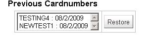 ---- Reported by jwagner@ptfs.com 2009-08-02 15:47:00 ---- Sponsored by East Brunswick Public Library, East Brunswick, NJ, USA Adds the ability to retain lost card numbers on the patron record, and restore old card numbers if requested. The lost card numbers are searchable. ---- Additional Comments From jwagner@ptfs.com 2009-08-02 15:49:25 ---- Created an attachment Lost card screenshot ---- Additional Comments From jwagner@ptfs.com 2010-05-12 12:22:06 ---- The fix for this bug (in ptfs-harley) can be pulled from the public git repository at http://github.com/Koha-PTFS, branch http://bugs.koha.org/cgi-bin/bugzilla3/show_bug.cgi?id=3469 It's been pulled off into a feature branch: cherry picked, tidied and pushed to http://git.koha-community.org/gitweb/?p=koha.git;a=shortlog;h=refs/heads/new_features_ptfs_lost_cards for future integration --- Bug imported by chris@bigballofwax.co.nz 2010-05-21 01:11 UTC --- This bug was previously known as _bug_ 3469 at http://bugs.koha.org/cgi-bin/bugzilla3/show_bug.cgi?id=3469 Imported an attachment (id=1326) Unknown operating system Windows 2000. Setting to default OS "All". Actual time not defined. Setting to 0.0 The original reporter of this bug does not have an account here. Reassigning to the person who moved it here: chris@bigballofwax.co.nz. Previous reporter was jwagner@ptfs.com. The original assignee of this bug does not have an account here. Reassigning to the default assignee for the component, gmcharlt@gmail.com. Previous assignee was kohaprogrammers@ptfs.com. The original submitter of attachment 1326 [details] is unknown. Reassigning to the person who moved it here: chris@bigballofwax.co.nz.