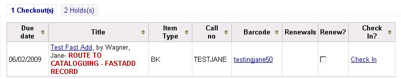 ---- Reported by jwagner@ptfs.com 2009-08-03 13:17:53 ---- Created an attachment Fast add creation screenshot Sponsored by Middletown Township Public Library, Middletown, NJ, USA. At circulation desk, if a barcode is scanned that is not in the catalog, add an option to create a "fast add" bib record. Circ staff can fill in the basics and check the item out; the item is flagged to be routed to cataloging upon return for proper record creation. Feature is controlled by a granular permission (fast_add)which is part of a separate enhancement. ---- Additional Comments From jwagner@ptfs.com 2009-08-03 13:18:15 ---- Created an attachment Fast add display screenshot ---- Additional Comments From jwagner@ptfs.com 2010-05-12 12:47:46 ---- The fix for this bug (in ptfs-harley) can be pulled from the public git repository at http://github.com/Koha-PTFS, branch http://bugs.koha.org/cgi-bin/bugzilla3/show_bug.cgi?id=3495. Note: Fast add functionality has already been added into current head (under Circ, Fast Cataloging), but that does not allow creation of a fast add record at checkout. This feature does; it could be integrated to use the existing fast add framework and functionality, but the new point-of-checkout option (where the circ staff creates the record and then continues the checkout automatically). --- Bug imported by chris@bigballofwax.co.nz 2010-05-21 01:11 UTC --- This bug was previously known as _bug_ 3495 at http://bugs.koha.org/cgi-bin/bugzilla3/show_bug.cgi?id=3495 Imported an attachment (id=1358) Imported an attachment (id=1359) Unknown operating system Windows 2000. Setting to default OS "All". Actual time not defined. Setting to 0.0 The original reporter of this bug does not have an account here. Reassigning to the person who moved it here: chris@bigballofwax.co.nz. Previous reporter was jwagner@ptfs.com. The original assignee of this bug does not have an account here. Reassigning to the default assignee for the component, gmcharlt@gmail.com. Previous assignee was kohaprogrammers@ptfs.com. The original submitter of attachment 1358 [details] is unknown. Reassigning to the person who moved it here: chris@bigballofwax.co.nz. The original submitter of attachment 1359 [details] is unknown. Reassigning to the person who moved it here: chris@bigballofwax.co.nz.