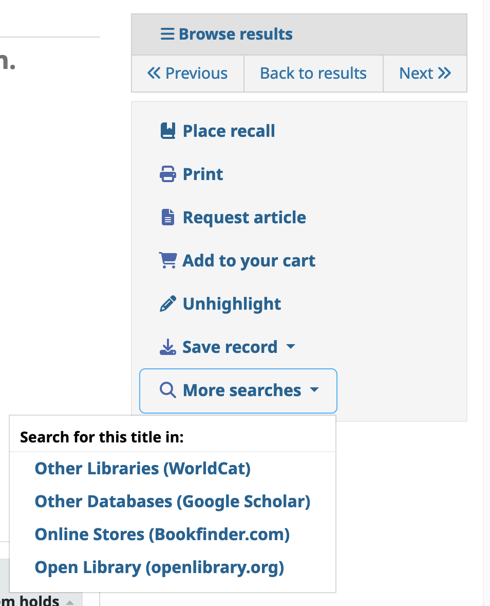 Created attachment 158896 [details] "More searches" menu item on the OPAC detail page