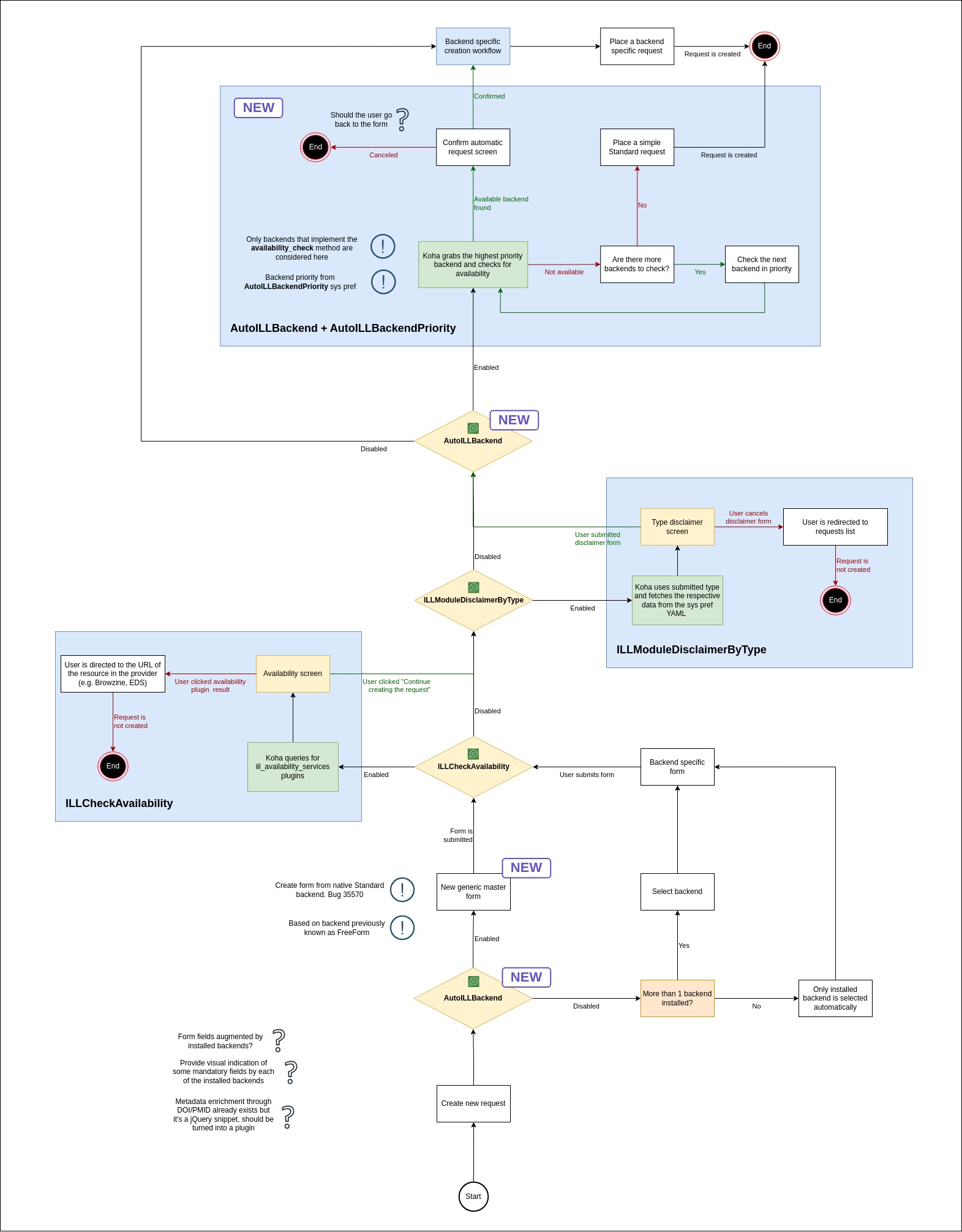Created attachment 160035 [details] ILL 2.0 flow Currently WIP but open to feedback from those interested/available: https://github.com/PTFS-Europe/koha/commits/ill_2.0/ This work depends on bug 35570 (native Standard ILL backend) and is currently being tested with an ILL backend plugin: https://github.com/PTFS-Europe/koha-ill-reprintsdesk/tree/pluginify Even if no one is able to test this at this point, the provided diagram should represent roughly the final intended result, feedback from that alone would be greatly appreciated!