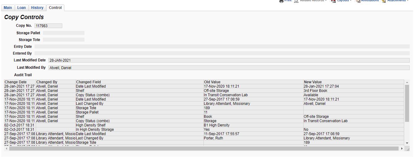 Created attachment 160266 [details] OLIB cataloging system item modification log The modification logs for a bib record puts all bibliographic and item information in a single text box when an edit occurs. For easier reading it would be nice to only show the fields/information that were modified. A previous catalog our library used would show a single line per change when an item was modified. It would show the date | person who made the change | old value | new value. This kept an accurate history and made reviewing the changes easy to read. As there is a single modification page for all items on a bib record the object column identifying which item was changed would need to be included. A similar table could be created for bib record modifications identifying the MARC field that was changed either in the Object column or in its own column, along with the old and new values.