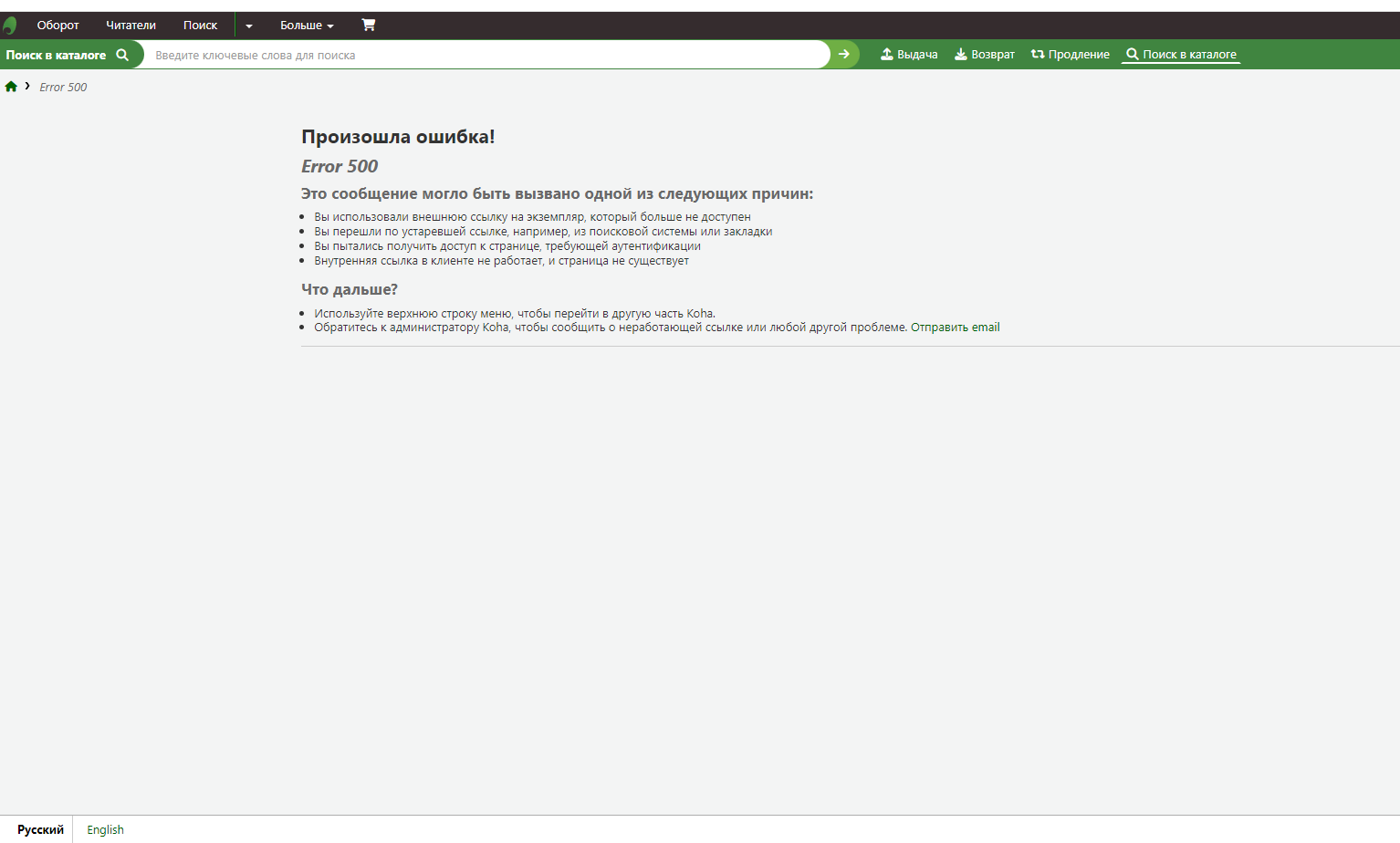 Created attachment 162490 [details] Russian interface After the last update of the program, the display of user pages, as well as the interface for writing off and adding literature, disappeared in the Russian administrator interface. Everything works in the English interface.