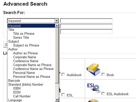 ---- Reported by jwagner@ptfs.com 2009-09-25 12:05:20 ---- Created an attachment Changes to staff advanced search screenshot This is to make the same changes as in http://bugs.koha.org/cgi-bin/bugzilla3/show_bug.cgi?id=3663 (OPAC advanced search) to the staff advanced search. First change is to copy the Search button from the bottom of the screen to up under the Keyword etc. search boxes, so someone doesn't have to scroll down for it. Either button will work. Second change is to reorder the entries in the search box pulldowns. I've rearranged the list so that Keyword, Title, Subject, Author are first in the list, as I did in the OPAC advanced search. I moved Barcode and Standard Number to next in the list to make them more visible to staff, and modified the description of Standard Number to Standard (biblio) Number because it's not clear that it means the biblio number. The rest of the existing search options follow. ---- Additional Comments From jwagner@ptfs.com 2010-05-12 13:32:38 ---- The fix for this bug (in ptfs-harley) can be pulled from the public git repository at http://github.com/Koha-PTFS, branch http://bugs.koha.org/cgi-bin/bugzilla3/show_bug.cgi?id=3665 --- Bug imported by chris@bigballofwax.co.nz 2010-05-21 01:13 UTC --- This bug was previously known as _bug_ 3665 at http://bugs.koha.org/cgi-bin/bugzilla3/show_bug.cgi?id=3665 Imported an attachment (id=1499) Unknown operating system Windows 2000. Setting to default OS "All". Actual time not defined. Setting to 0.0 The original reporter of this bug does not have an account here. Reassigning to the person who moved it here: chris@bigballofwax.co.nz. Previous reporter was jwagner@ptfs.com. The original assignee of this bug does not have an account here. Reassigning to the default assignee for the component, gmcharlt@gmail.com. Previous assignee was jwagner@ptfs.com. Bug reassigned, setting status to "NEW". Previous status was "ASSIGNED". The original submitter of attachment 1499 [details] is unknown. Reassigning to the person who moved it here: chris@bigballofwax.co.nz.