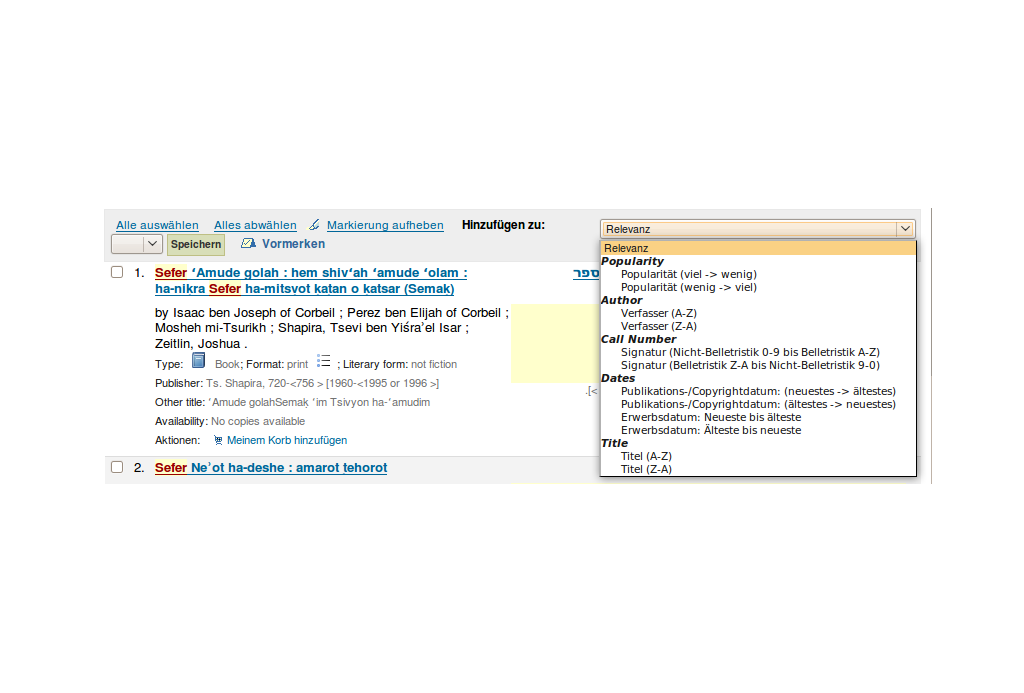 ---- Reported by katrin.fischer@bsz-bw.de 2009-09-28 06:28:32 ---- Created an attachment Screenshot of 'sort by' in opac Labels of <optgroups> seem to be not translatable in po-files. Lists using optgroups: memberentry.pl (patron categories) resort_form.inc (sort by on OPAC results page) ---- Additional Comments From henridamien@koha-fr.org 2009-09-28 08:30:22 ---- Adding _("") to values could solve the problem ---- Additional Comments From katrin.fischer@bsz-bw.de 2010-04-23 19:06:07 ---- This bug is solved in 3.01.00.128. Marking bug as fixed. --- Bug imported by chris@bigballofwax.co.nz 2010-05-21 01:13 UTC --- This bug was previously known as _bug_ 3672 at http://bugs.koha.org/cgi-bin/bugzilla3/show_bug.cgi?id=3672 Imported an attachment (id=1507) Actual time not defined. Setting to 0.0 The original submitter of attachment 1507 [details] is unknown. Reassigning to the person who moved it here: chris@bigballofwax.co.nz.