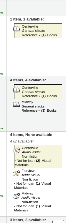 It would be nice if items at the logged in library were highlighted in the search results "Location column".