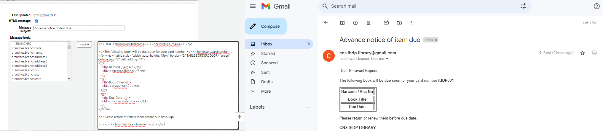 Created attachment 169262 [details] screenshot for email and template I have created a template of my own for advance due notice to patrons but as you see in the screenshot the table doesn't show the information...can you please guide where I am going wrong.