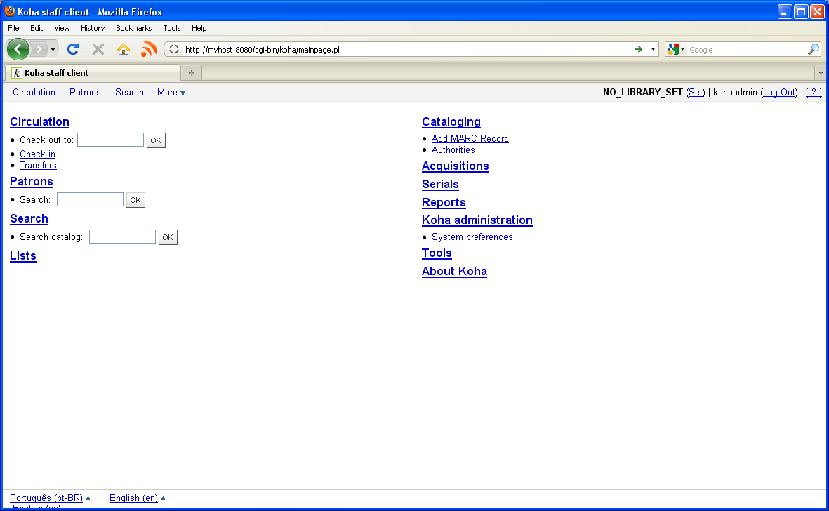 ---- Reported by nahuel.angelinetti@biblibre.com 2009-11-03 15:27:03 ---- If you choose only english in "opaclanguage" or "language" syspref, and theme is translated in spanish and french. The frenchies and spanishes browsers will use french and spanish translated files, instead of use only english files ans specified in syspref. ---- Additional Comments From ricmarques@spamcop.net 2009-11-17 13:55:57 ---- Created an attachment Look of Koha staff client in Koha 3.0.4, with pt-BR folder, before Nahuel patch ---- Additional Comments From ricmarques@spamcop.net 2009-11-17 14:34:15 ---- Created an attachment Look of Koha staff client in Koha 3.0.4, with pt-BR folder, AFTER Nahuel patch Staff client looks much better, after applying Nahuel's patch! :) However, I can't switch language from Português (Portuguese) to English ---- Additional Comments From ricmarques@spamcop.net 2009-11-17 14:36:38 ---- Created an attachment Look of Koha staff client in Koha 3.0.4, with pt-BR folder, AFTER Nahuel patch Staff client looks much better, after applying Nahuel's patch! :) However, I can't switch language from Português (Portuguese) to English ---- Additional Comments From ricmarques@spamcop.net 2009-11-17 14:47:19 ---- Created an attachment Look of Koha staff client in Koha 3.0.4, with pt-BR folder, AFTER Nahuel patch AND my patch After applying my patch, as a follow-up to Nahuel's patch, I get the same correct look of the "staff client" (thanks to Nahuel's patch) *and* I can now switch between "Português" (Portuguese) and English (thanks to my patch). ---- Additional Comments From ricmarques@spamcop.net 2009-11-17 14:50:14 ---- Created an attachment [Koha-patches] [PATCH] http://bugs.koha.org/cgi-bin/bugzilla3/show_bug.cgi?id=3754: Follow-up patch My follow-up patch (to Nahuel's patch) that enables the switch between "Português" (Portuguese) and English ---- Additional Comments From ricmarques@spamcop.net 2009-11-17 15:38:05 ---- Nahuel Angelinneti has submitted a patch that solves this problem and that was committed for the 3.0.x branch of Koha. The patch is available here: ---------------------------------------- (http://bugs.koha.org/cgi-bin/bugzilla3/show_bug.cgi?id=3754) fix language choose http://git.koha.org/cgi-bin/gitweb.cgi?p=Koha;a=commit;h=df25509e8c500c0e91b9f2343ebca1c7c98238cf author Nahuel ANGELINETTI <nahuel.angelinetti@biblibre.com> Tue, 3 Nov 2009 15:30:22 +0000 (16:30 +0100) committer Henri-Damien LAURENT <henridamien.laurent@biblibre.com> Tue, 3 Nov 2009 15:47:46 +0000 (16:47 +0100) commit df25509e8c500c0e91b9f2343ebca1c7c98238cf ---------------------------------------- This patch solved a problem that I was having, in the Intranet (Staff) interface in a Koha 3.0.4 setup (UNIMARC and NoZebra installation, running in a SLES 11 virtual machine - SUSE Linux Enterprise Server 11). That installation had "Português" (Portuguese, "pt-PT") and also "Português (Brasil)" (Brazilian Portuguese, "pt-BR") template folders. After I logged in to the staff client, I got the *very weird* screenshot (in Mozilla Firefox 3.5.5, in Windows XP Professional) that's available at: http://bugs.koha.org/cgi-bin/bugzilla3/attachment.cgi?id=1248 The languages set in Firefox (under "Tools", "Options", "Content" tab, "Languages" section) were these (in the following order): - Portuguese [pt] - English/United States [en-us] - French [fr] - English [en] The problem was correctly traced by Chris Cormack that pointed that, for "pt-BR", there's no "includes" directory under: /usr/share/koha/intranet/htdocs/intranet-tmpl/prog/pt-BR However, my System Preferences that are related to language have the following values (none of them mentions pt-BR): mysql> select variable, value from systempreferences where variable LIKE '%lang%'; +----------------------+----------+ | variable | value | +----------------------+----------+ | language | pt-PT,en | | opaclanguages | pt-PT,en | | opaclanguagesdisplay | 1 | +----------------------+----------+ 3 rows in set (0.00 sec) The weird look of the screenshot went away when applying Nahuel's patch. Thanks Nahuel! :) HOWEVER, I was unable to switch between "Português" (Portuguese) and "English". I created a follow-up patch to Nahuel's (that "builds" on his patch) and that solved the problem of being unable to switch. I sent the patch to the "Koha Patches" mailing list and the patch is available at: [Koha-patches] [PATCH] http://bugs.koha.org/cgi-bin/bugzilla3/show_bug.cgi?id=3754: Follow-up patch http://bugs.koha.org/cgi-bin/bugzilla3/attachment.cgi?id=1252 So, I would like to ask you to also apply ("commit") my patch to the 3.0.x branch, so that it gets included for the 3.0.5 release. I don't have a git setup for the "master" branch but I suspect that these problems also happen for that one, and so the two patches should also be applied to that branch (as two patches or as a single patch). On a related note, could you also commit the following patch (also for 3.0.5): [Koha-patches] [PATCH] Fix for http://bugs.koha.org/cgi-bin/bugzilla3/show_bug.cgi?id=3730 - Wrong ISO 639-2 Language Code for Portuguese in database http://lists.koha.org/pipermail/koha-patches/2009-October/004766.html Thanks and congratulations for the work already done! :) --- Bug imported by chris@bigballofwax.co.nz 2010-05-21 01:14 UTC --- This bug was previously known as _bug_ 3754 at http://bugs.koha.org/cgi-bin/bugzilla3/show_bug.cgi?id=3754 Imported an attachment (id=1550) Imported an attachment (id=1551) Imported an attachment (id=1552) Imported an attachment (id=1553) Imported an attachment (id=1554) Actual time not defined. Setting to 0.0 The original submitter of attachment 1550 [details] is unknown. Reassigning to the person who moved it here: chris@bigballofwax.co.nz. The original submitter of attachment 1551 [details] is unknown. Reassigning to the person who moved it here: chris@bigballofwax.co.nz. The original submitter of attachment 1552 [details] is unknown. Reassigning to the person who moved i