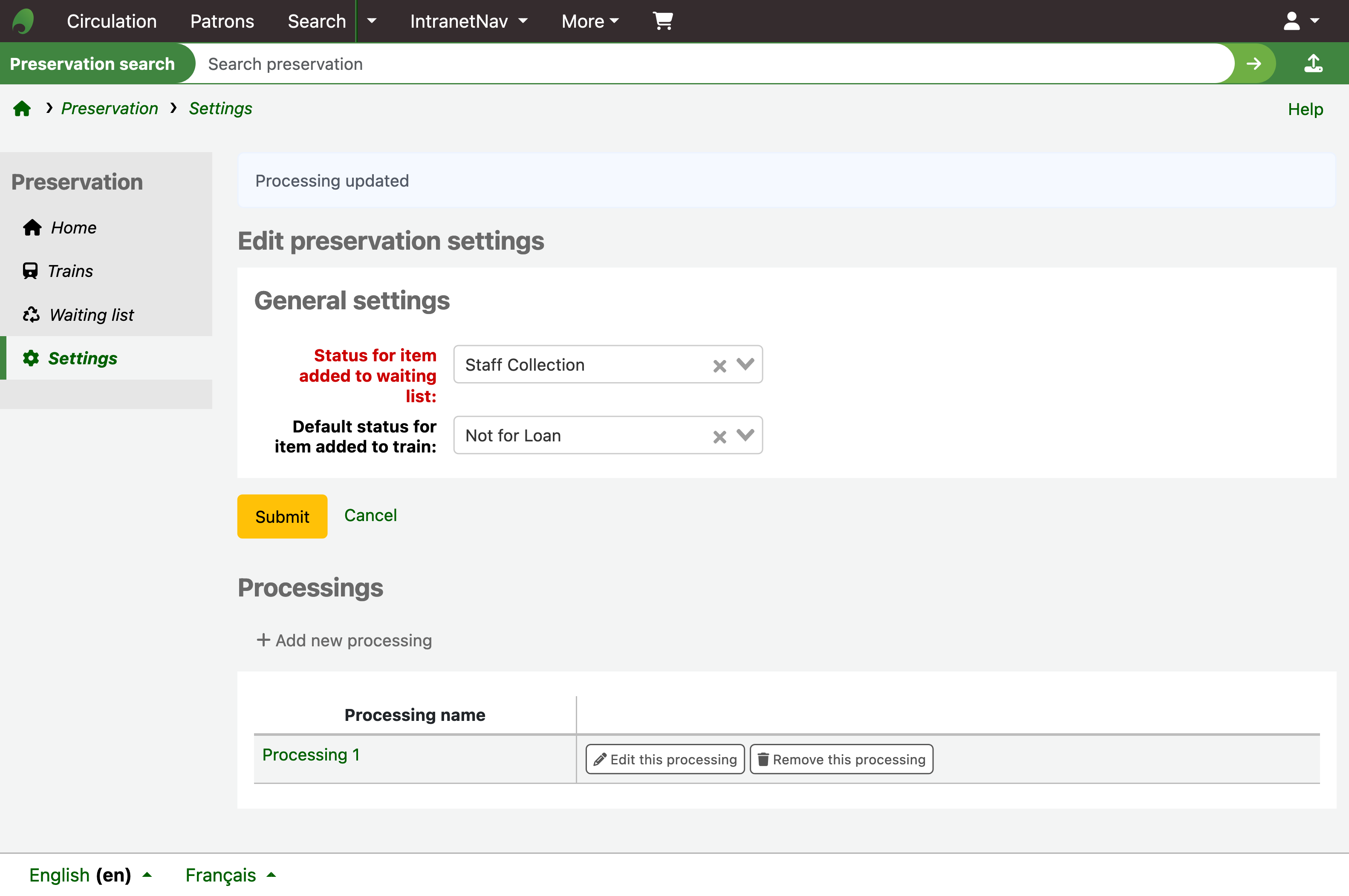 Created attachment 171883 [details] Rough mockup of the proposed interface I think it might make sense and be more consistent to display preservation module processings in a table. See attached mockup.