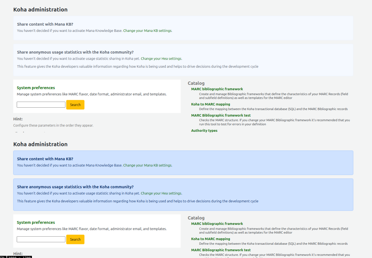 Created attachment 174739 [details] administration (In reply to Katrin Fischer from comment #18) > Not sure if that's the same spot. But I notice the Hea and ManaKB notes on > the administration start page are also a bit pale. Yes.