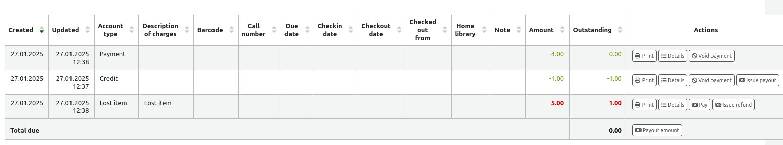Created attachment 177194 [details] Balanced total due value on transactions Calculating total due on transaction page is giving a result that cannot be paid if an account line is partly paid and some credit is added. The balance is taking the credit into account and showing total due as zero even there is payment that you could pay. The payout amount does not work since you have to pay same amount as in total due and payment cannot be zero.