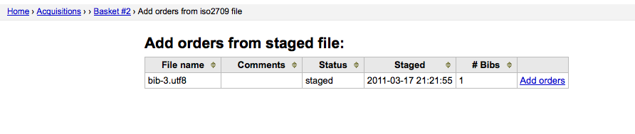 This bug is mentioned in: Bug 3919 : (MT #3742) : Add orders from staged file. http://lists.koha-community.org/pipermail/koha-patches/2011-March/014223.html