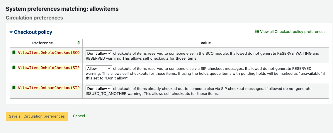 Created attachment 179330 [details] Screenshot of "allowitems" system preferences in 24.11 In 24.11, Bug 18317 gave the ability to allow checkouts of items already on loan via SIP with the AllowItemsOnLoanCheckoutSIP system preference. There is also another system preference: AllowItemsOnHoldCheckoutSIP that has a corresponding preference for Koha's self-checkout module: AllowItemsOnHoldCheckoutSCO. It would be great if we could also have a corresponding SCO allow for On Loan items - presumably called AllowItemsOnLoanCheckoutSCO.