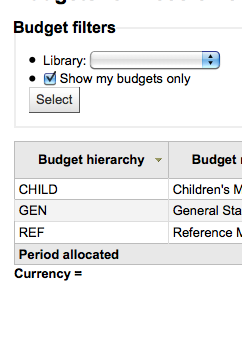 ---- Reported by nengard@gmail.com 2009-12-19 22:42:10 ---- Created an attachment currency note See attached. At the bottom of the list of budgets it says 'Currency =' but there is nothing after that - either the note should be removed or it should show what the currency is. I'm for removing it since I assume that most libraries know what currency they use by default. ---- Additional Comments From oleonard@myacpl.org 2010-01-29 14:04:04 ---- The empty "currency = " is caused by there being no active currency defined. The "active" aspect was added recently, so an updated database will have no currencies marked as active. Pages which reference the active currency should warn the user if there is none chosen. ---- Additional Comments From oleonard@myacpl.org 2010-01-29 15:53:52 ---- Created an attachment Proposed fix - Adds warning to budget admin pages - Adds warning to currency admin page --- Bug imported by chris@bigballofwax.co.nz 2010-05-21 01:21 UTC --- This bug was previously known as _bug_ 3970 at http://bugs.koha.org/cgi-bin/bugzilla3/show_bug.cgi?id=3970 Imported an attachment (id=1728) Imported an attachment (id=1729) Actual time not defined. Setting to 0.0 Setting qa contact to the default for this product. This bug either had no qa contact or an invalid one. The original submitter of attachment 1728 [details] is unknown. Reassigning to the person who moved it here: chris@bigballofwax.co.nz. The original submitter of attachment 1729 [details] [review] is unknown. Reassigning to the person who moved it here: chris@bigballofwax.co.nz.