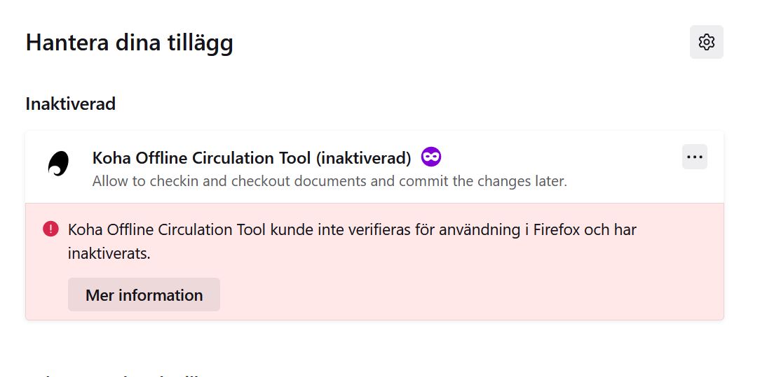 Created attachment 184626 [details] Screen shot The Firefox plugin "Koha Offline Circulation Tool" needs to be "verified"