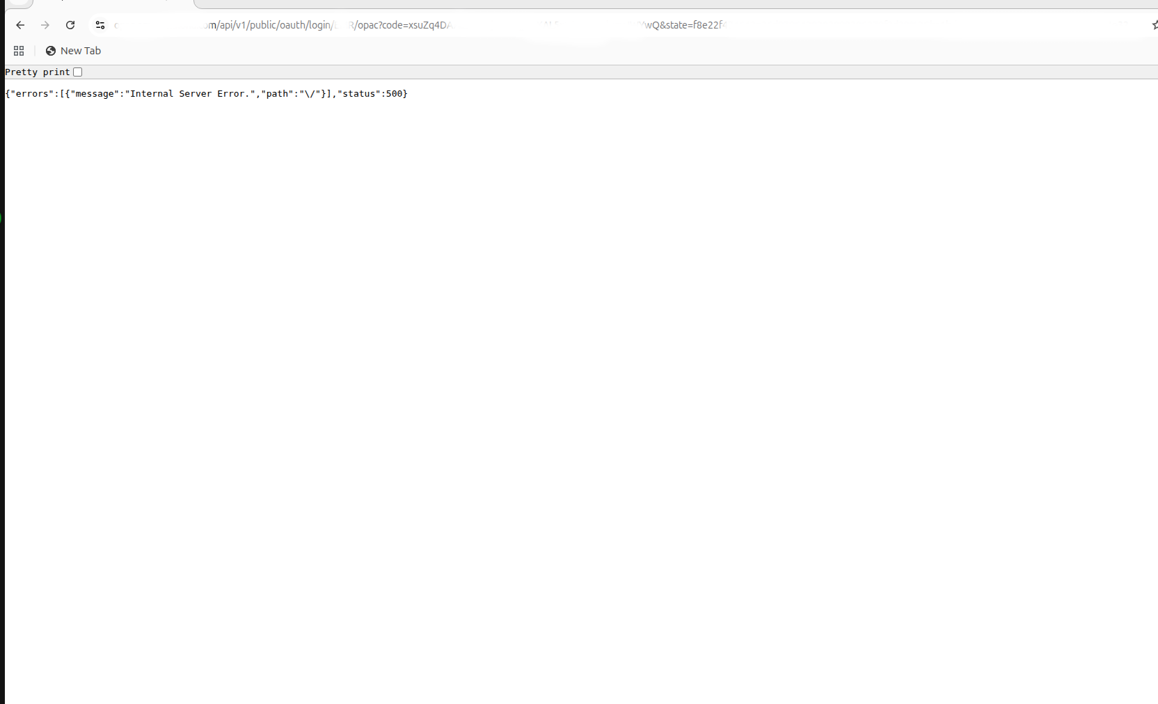 (In reply to David Cook from comment #3) > (In reply to Alex Buckley from comment #1) > > Hi, > > > > Thank you for reporting this. We are also encountering this error when human > > users are trying to log into the Koha OPAC (24.11.07) via OIDC from Chrome. > > I thought that you said that it was working in Chrome but not in Firefox and > only for Okta? Thanks for asking David! This is a new error we have recently encountered, also for Okta (the Koha IdP is configured to use protocol=OIDC). So separate to the login/logout/login we have inquired about. This error is not consistent, but the workflow is: - Start Chrome. - Go to either the Koha OPAC or staff client login page. - Click the 'Log in with Okta IdP' button. - You're re-directed to Okta. - After logging in, you're redirected back to Koha with an internal server error - screenshot attached from OPAC. I'm warning out the following (below this line https://git.koha-community.org/Koha-community/Koha/src/commit/2778a49fb16be18fc7ee0bc86983f8f9f0e16902/Koha/REST/V1/OAuth/Client.pm#L83 ): use Data::Dumper; warn Dumper($c->req->cookie('CGISESSID')); And in plack-api-error.log the $c->req->cookie('CGISESSID') is NULL and the error is thrown: [2025/09/22 05:39:33] [WARN] $VAR1 = undef; [2025/09/22 05:39:33] [ERROR] Can't call method "value" on an undefined value at /usr/share/koha/lib/Koha/REST/V1/OAuth/Client.pm line 86.
