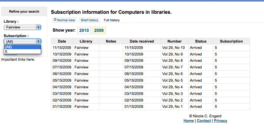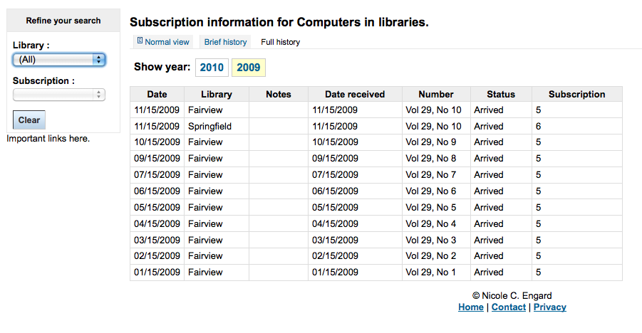 I was going to tackle this, but now there is a filter on the left that lets you choose a subscription number to filter on - again this makes no sense to patrons who have no idea that this subscription for People magazine is #12 (or whatever). Do we really need this filter on subscription ID number in the OPAC?
