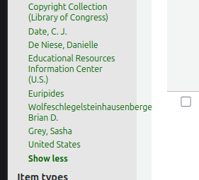 Hi Katrin, It does not fix it, no. I have the FacetLabelTruncationLength set to 20, and it is still showing up strange (I'll upload an example).The setting on that system preference states that it requires Zebra, while my example is using ElasticSearch. Perhaps that's part of the problem?