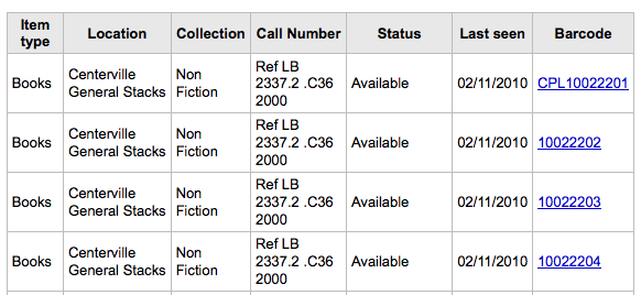 ---- Reported by nengard@gmail.com 2010-02-13 22:47:51 ---- Created an attachment first follows autoBarcode - the rest don't When adding duplicate items only the first time follows the rules set forth by the autoBarcode system preference. See attached image. ---- Additional Comments From nengard@gmail.com 2010-02-13 22:51:23 ---- This goes for the 'add multiple items' open as well ---- Additional Comments From nengard@gmail.com 2010-05-04 15:31:34 ---- Created an attachment multiple item adding This is still an issue when adding multiple items only the first barcode includes the branch code. --- Bug imported by chris@bigballofwax.co.nz 2010-05-21 01:24 UTC --- This bug was previously known as _bug_ 4175 at http://bugs.koha.org/cgi-bin/bugzilla3/show_bug.cgi?id=4175 Imported an attachment (id=1889) Imported an attachment (id=1890) Actual time not defined. Setting to 0.0 Setting qa contact to the default for this product. This bug either had no qa contact or an invalid one. The original submitter of attachment 1889 [details] is unknown. Reassigning to the person who moved it here: chris@bigballofwax.co.nz. The original submitter of attachment 1890 [details] is unknown. Reassigning to the person who moved it here: chris@bigballofwax.co.nz.