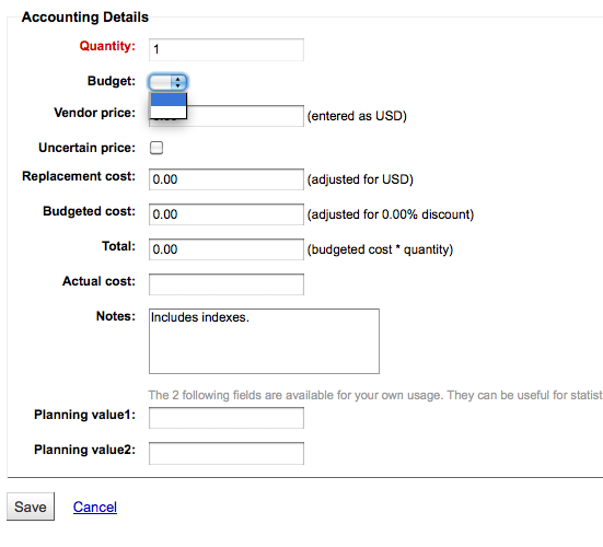 ---- Reported by nengard@gmail.com 2010-03-02 15:26:54 ---- When you delete a budget (cgi-bin/koha/admin/aqbudgetperiods.pl?op=delete_confirm&budget_period_id=3) there are no warnings - but if you delete a budget the funds are orphaned - meaning that the funds remain (cgi-bin/koha/admin/aqbudgets.pl) without being attached to a budget anymore. This means that when you go to place an order there are no warnings saying that you need to define a budget and the budget pull down is empty on the order page (/cgi-bin/koha/acqui/neworderempty.pl?booksellerid=1&basketno=14&biblionumber=40). Something needs to be in place to prevent the deletion of things that will lead to things being broken. ---- Additional Comments From nengard@gmail.com 2010-03-02 15:30:12 ---- Created an attachment all budgets deleted cgi-bin/koha/admin/aqbudgetperiods.pl?op=delete_confirm&budget_period_id=3 ---- Additional Comments From nengard@gmail.com 2010-03-02 15:30:33 ---- Created an attachment funds listed cgi-bin/koha/admin/aqbudgets.pl ---- Additional Comments From nengard@gmail.com 2010-03-02 15:30:59 ---- Created an attachment order without budget /cgi-bin/koha/acqui/neworderempty.pl?booksellerid=1&basketno=14&biblionumber=40 --- Bug imported by chris@bigballofwax.co.nz 2010-05-21 01:25 UTC --- This bug was previously known as _bug_ 4292 at http://bugs.koha.org/cgi-bin/bugzilla3/show_bug.cgi?id=4292 Imported an attachment (id=1985) Imported an attachment (id=1986) Imported an attachment (id=1987) Actual time not defined. Setting to 0.0 Setting qa contact to the default for this product. This bug either had no qa contact or an invalid one. The original submitter of attachment 1985 [details] is unknown. Reassigning to the person who moved it here: chris@bigballofwax.co.nz. The original submitter of attachment 1986 [details] is unknown. Reassigning to the person who moved it here: chris@bigballofwax.co.nz. The original submitter of attachment 1987 [details] is unknown. Reassigning to the person who moved it here: chris@bigballofwax.co.nz.
