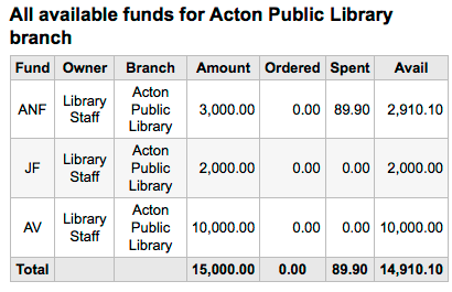 Created attachment 5453 [details] [review] bug_4831: Use unitprice (actual cost) when totalling spent amounts for "All available funds", as in "Already received" Signed-off-by: Katrin Fischer <Katrin.Fischer.83@web.de> To test: - add new fund for an active budget - order item, price 8.00 - check funds page and acq home: committed amount should be 8.00 - receive item, enter actual price 10.00 - check funds page and acq home: spent amount should be 10.00