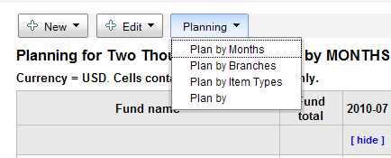 owen, you can plan by month/branch/itemtype, but you're supposed to be able to plan by any of the authorised value category you're choosen when entering a fund in /cgi-bin/koha/admin/aqbudgets.pl?op=add_form&budget_period_id=1 if you get an empty one, it's probably because there's a bug : either you don't have choosen a planning category (in this case you should not have this line at all) or you've choosen a category in one fund, and you should have something.