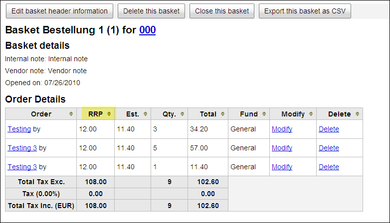 In acquisitions there are different terms used for the same thing in the database. The vendor form uses 'ordering price' and 'list price', the new order form uses 'vendor price'. I wrote a patch to change 'ordering price' to 'list price' in the new vendor form, because this term was used in all other places in this template. (bug 5059) Now I found 'vendor price' in the new order form. The basket view uses 'RRP' (see screenshot) The PDF print layout 'pdfformat::layout3pages' uses 'RRT GST Inc.' as column heading. Comments from discussion on IRC: (15:21:47) slef: I'm looking at ODLIS (15:23:41) slef: It says in "list price"'s definition "Synonymous with published price and retail price" but I suspect this might be a subtle difference between "list price" and "retail price" (15:08:27) nengard: i think vendor price might be the safest option (15:08:37) nengard: that says to me the price the vendor is charging (15:08:48) nengard: or the price the vendor has listed on their site or in their catalog I'm not a native speaker, so not sure which term to choose. But I think reducing the used terms to one would make things (translation, documentation, trainign) a lot easier!