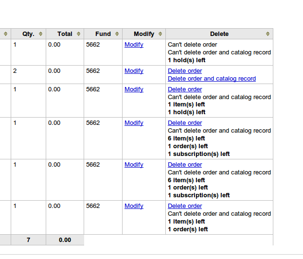 Hi Christophe, thx for commenting :) 4) Showing no link is ok for me. I am trying to imagine a good way to show the reason why the link is not available, but I have no good idea right now. If you don't show the link for existing subscriptiosn I will sign-off. 5) I like the idea for hold cancellation messages. But to sign-off on this patch I think it would be ok if you check for existing holds, give an alert and refuse to delete the order in that case. So the librarian can cancel them manually and inform the borrower if they want to.
