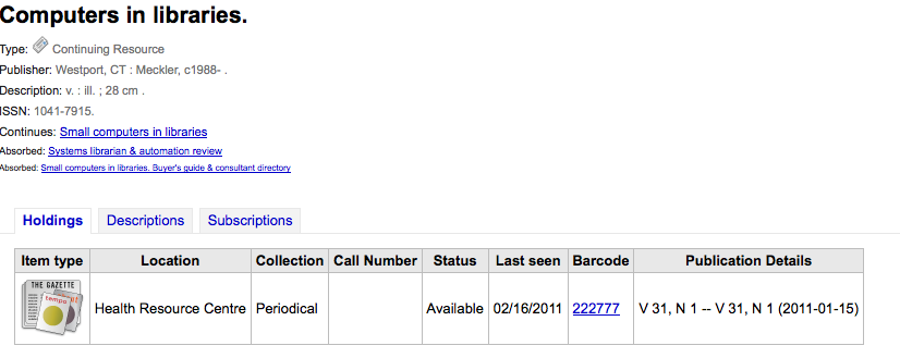 Created attachment 3162 [details] enumeration showing twice When you're in the staff client and viewing the holdings of subscription it shows the enumeration twice (in the opac it appears properly - only once).